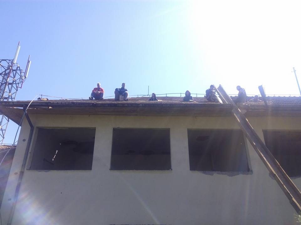 Het dak wordt gesloopt