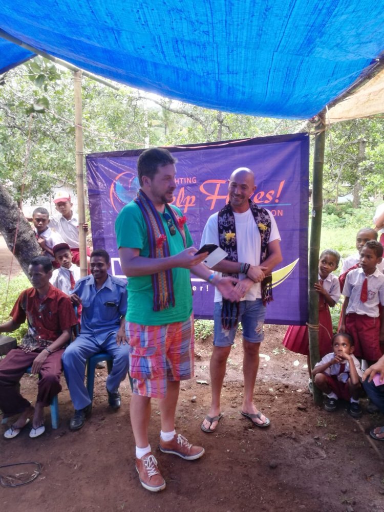 Na de ontvangst sprak de burgemeester, en de directeur van YHF (de lokale zusterstichting van SHF). Vervolgens kwam de voorzitter van SHF aan de beurt. Hij vroeg allereerst naar de gerealiseerde waterprojecten. Vervolgens bood hij de schoolboeken aan, aan het dorp.