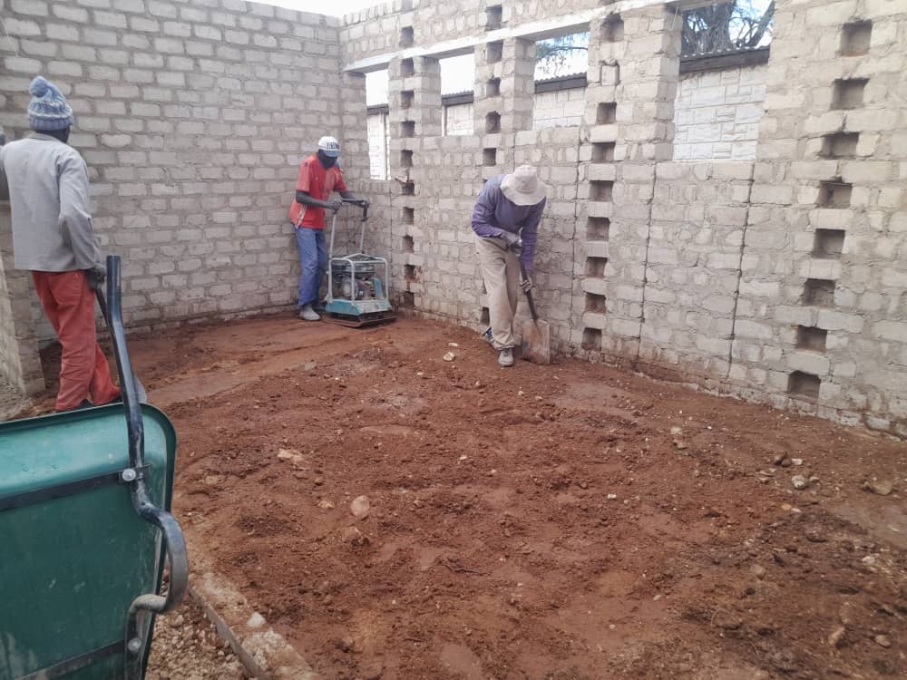 Recent hebben we een aantal foto’s ontvangen waarin de voortgang van de bouw van het trainingslokaal zichtbaar wordt.